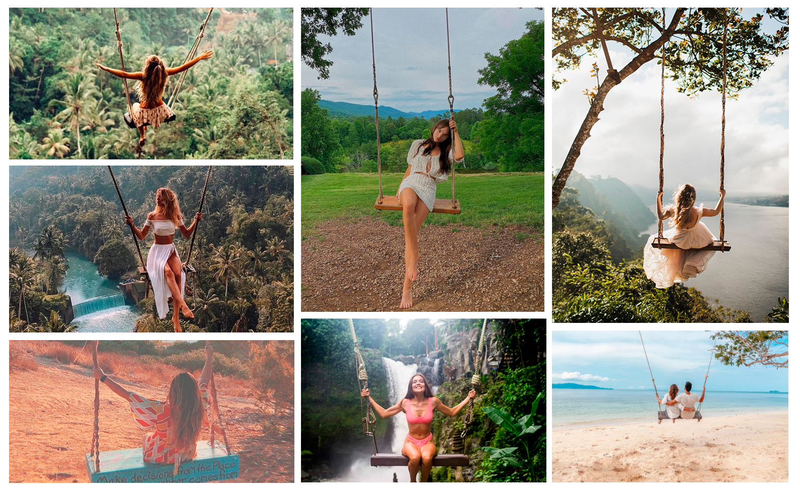 In modern society, the superficial desires of people are just as evident. Society hasa similar obsession with superficial and instant gratification, as seen in the proliferation of erotic content on social media. If not more so, with the rise of social media. The constant need to present an idealized version of oneself on platforms like Instagram has led to a culture of voyeurism, where people are constantly peeking into the lives of others. Travel influencers, in particular, have become popular on these platforms, with many sharing pictures of themselves in exotic locations, often in swings or other playful poses.